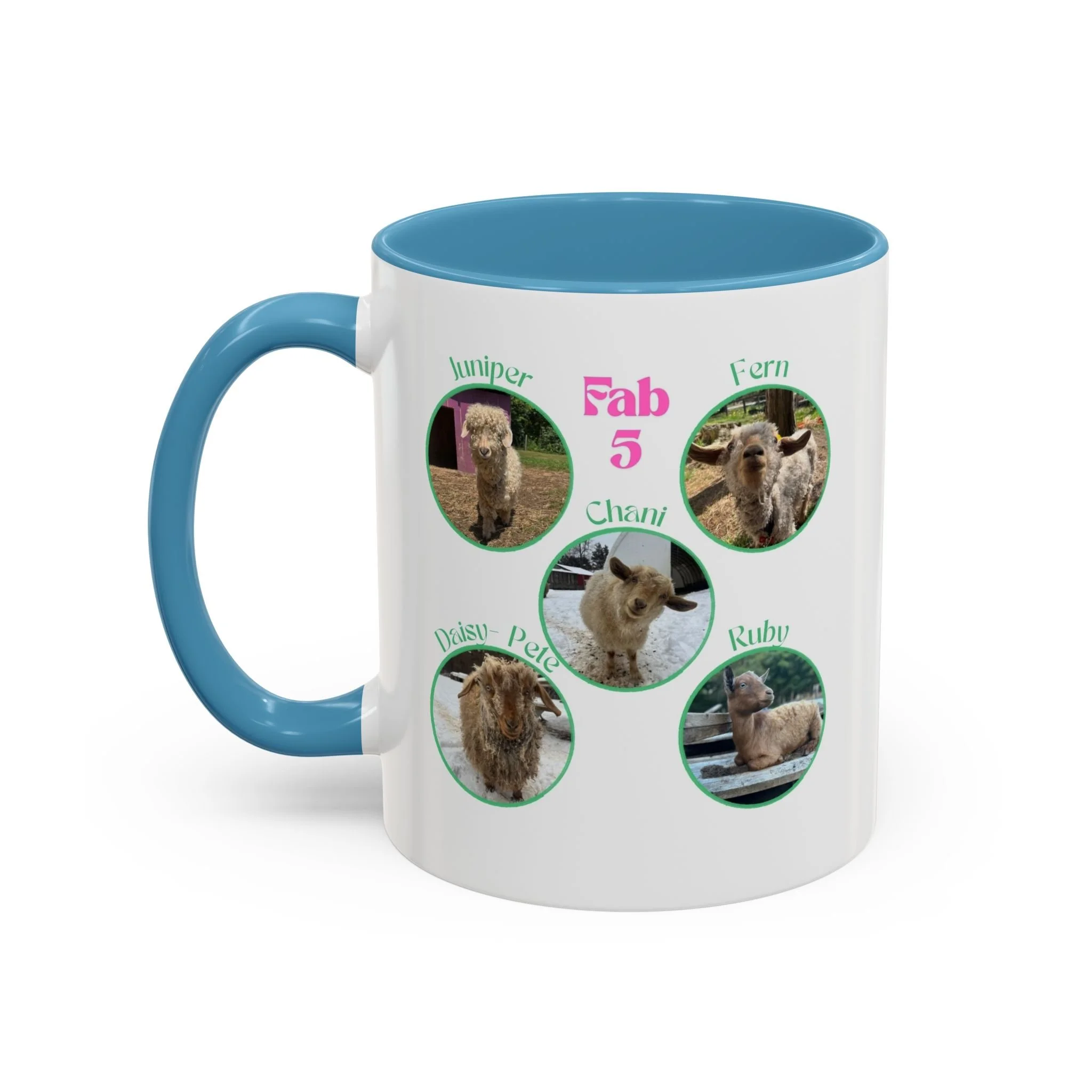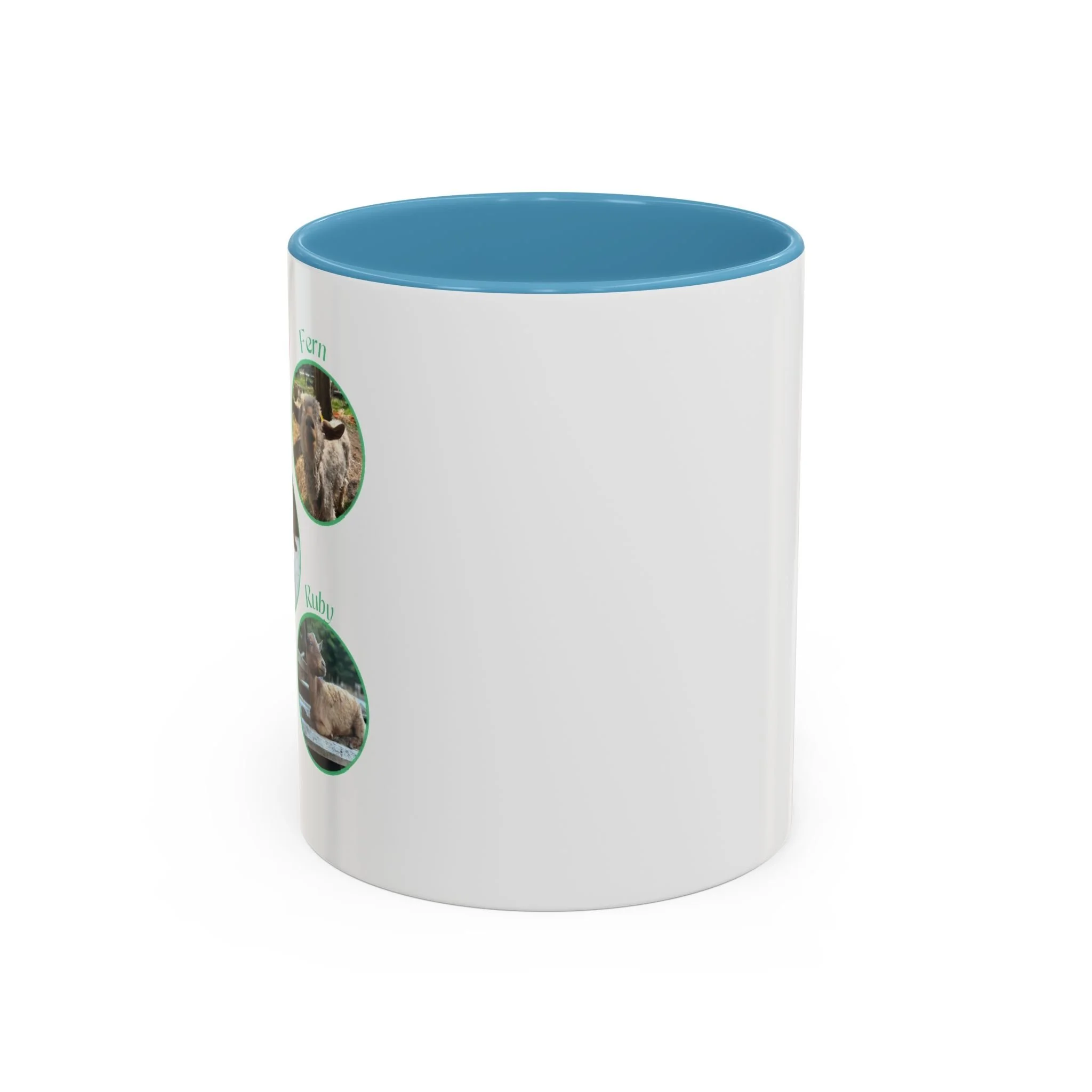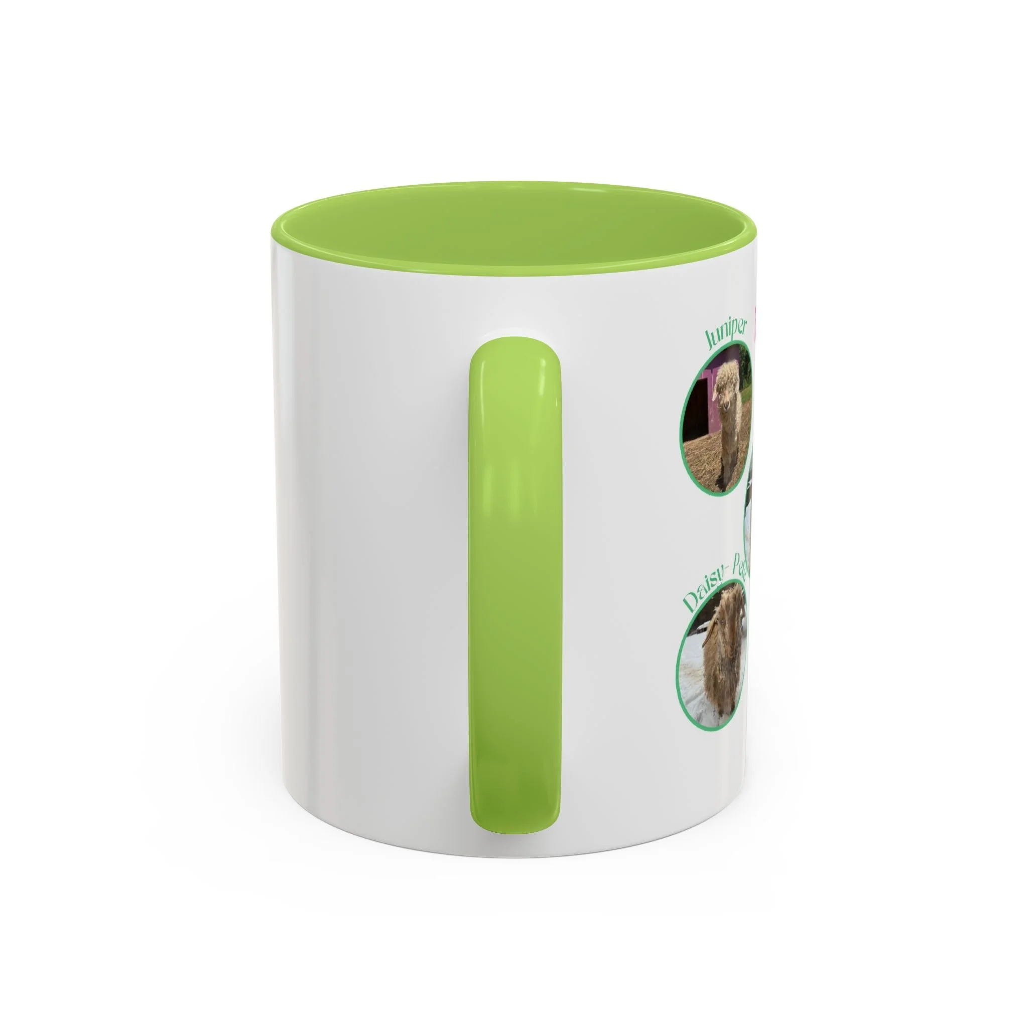 - White ceramic with colored interior and handle